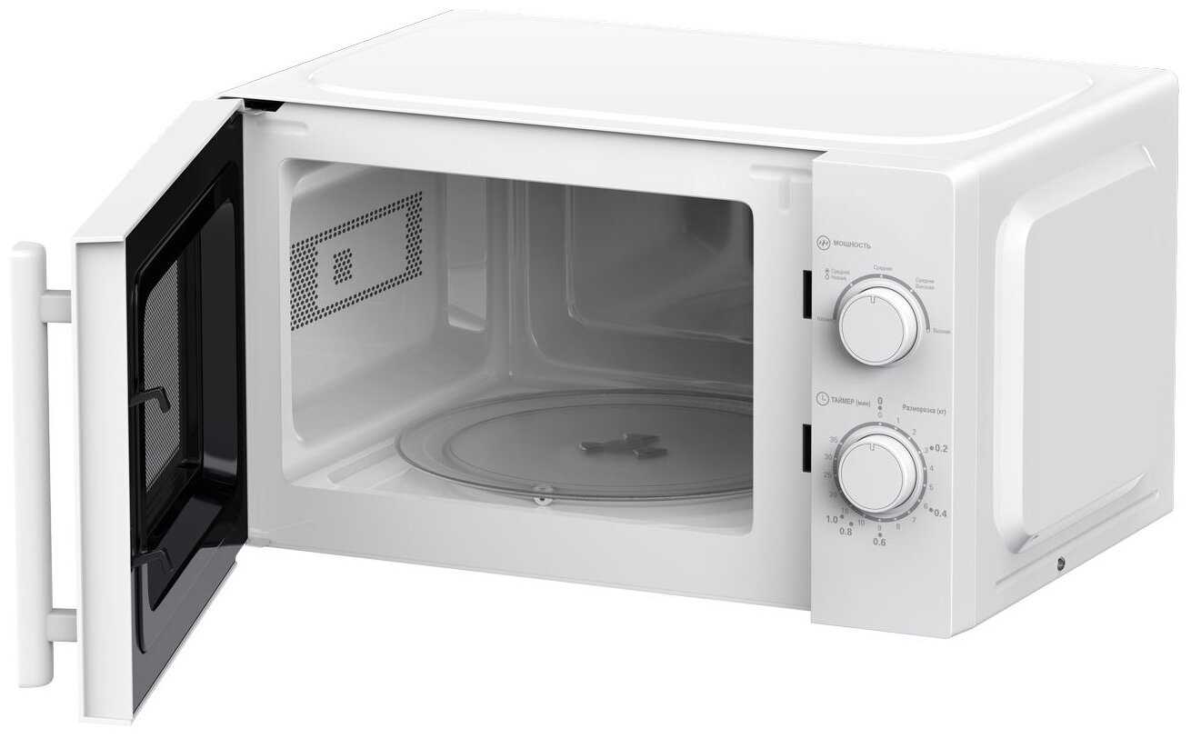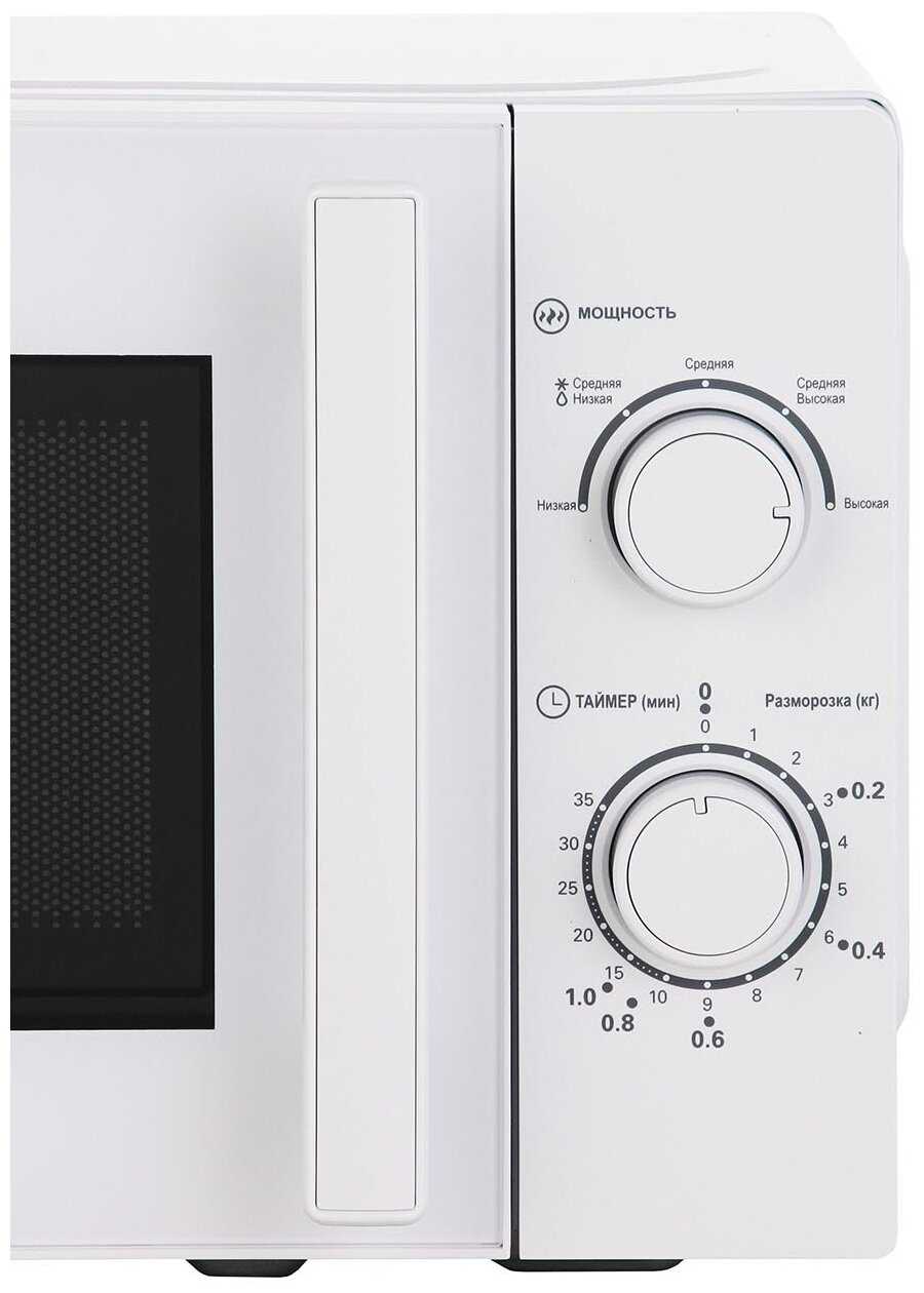 С переездом решила обновить свою технику и купить себе более современную микроволновку. Она выглядит лаконично, и дизайн у нее вписывается в интерьер. Управление механическое, поворотные регуляторы легко регулируют мощность и режим работы. Микроволновка большая мне не нужна была, поэтому купила компактную модель. На 20 литров. Внутри есть поворотный стол. Печь имеет всего 5 уровней мощности. А для разморозки предусмотрено 2 режима. Настроить разморозку можно по весу продукта. Прогревает хорошо, равномерно. Работает хорошо, нареканий нет.