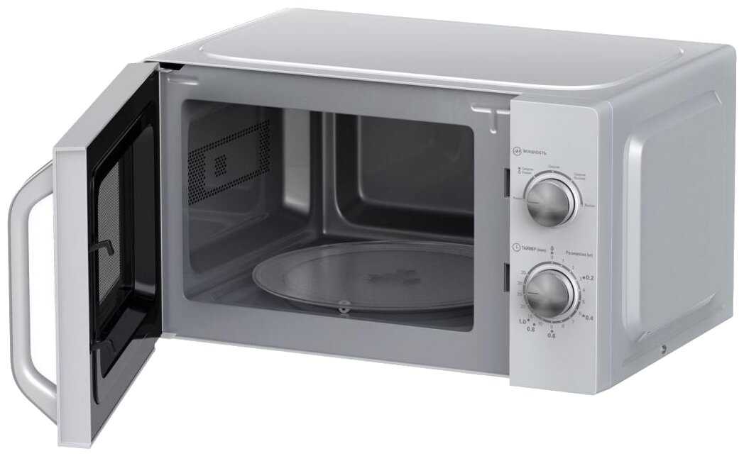 - + Микроволновка сделала нашу кухню еще более функциональной и эстетически привлекательной. Преимущество модели - ее ёмкость. Благодаря объему в 20 литров, можно легко разместить больше продуктов для приготовления. Поворотные переключатели позволяют управлять микроволновкой легко и интуитивно.