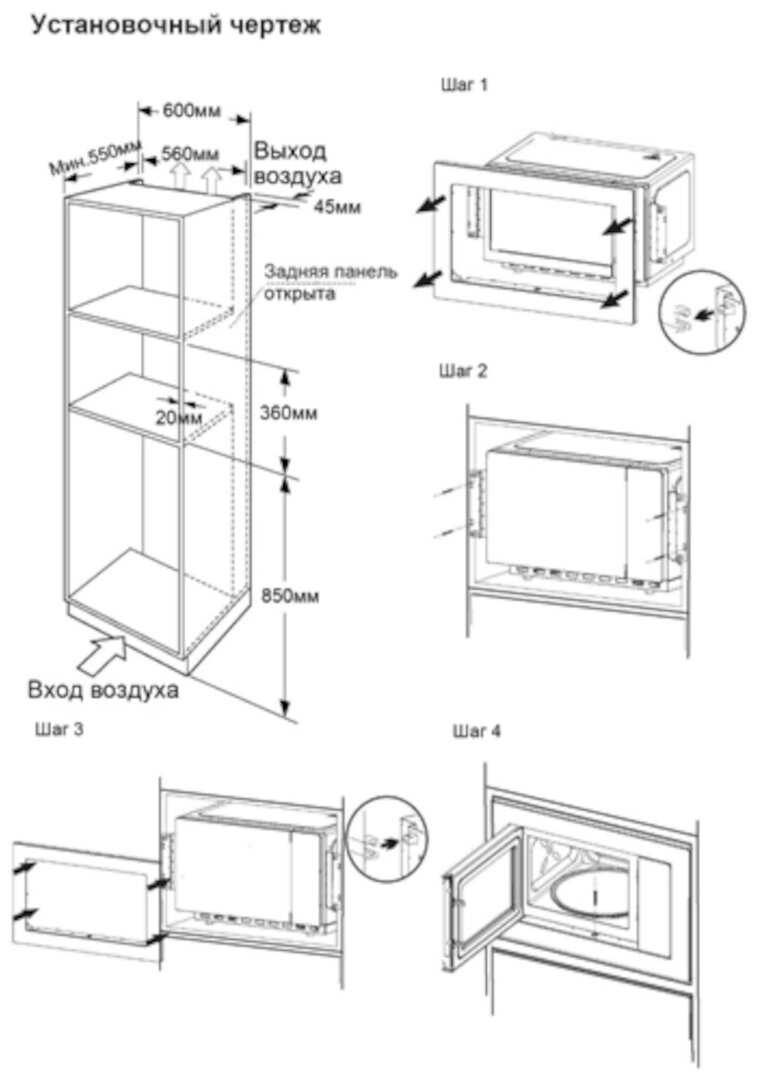 | Режимы работы : | гриль, конвекция, микроволны + гриль, разморозка |