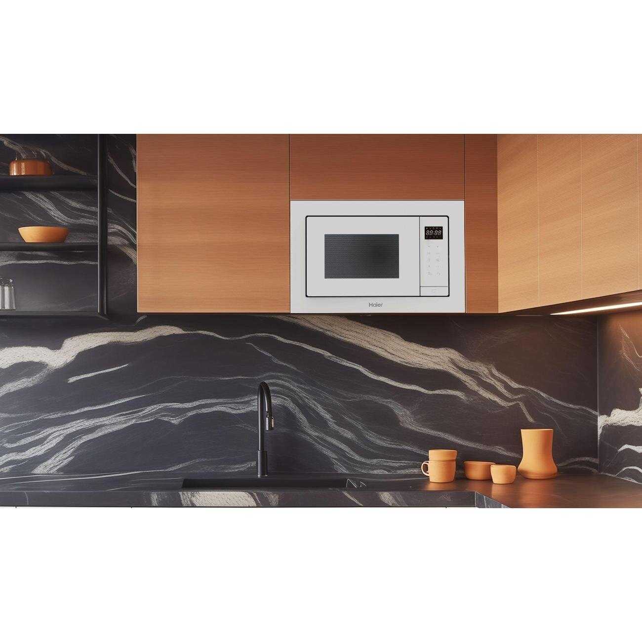 - + Микроволновка очень понравилась, она подошла к духовке белого цвета производителя Haier, светлая, в дизайне кажется легкая. Тарелка большого диаметра вмещается ( тарелка обеденная)