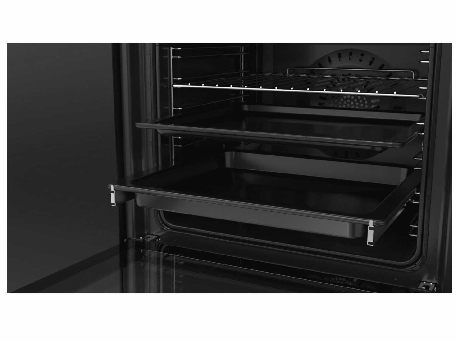 Хорошая духовка, приятно собрана. Удобно что направляющих 2 штуки и их можно поставить на те уровни на которых чаще готовите. По работе нет нареканий, печет отлично.