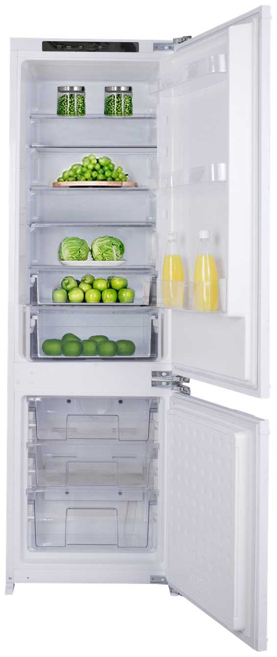 - Модель выше стандартных встраиваемых холодильников (например, 185 см против типичных 177 см), что позволяет разместить дополнительные полки.