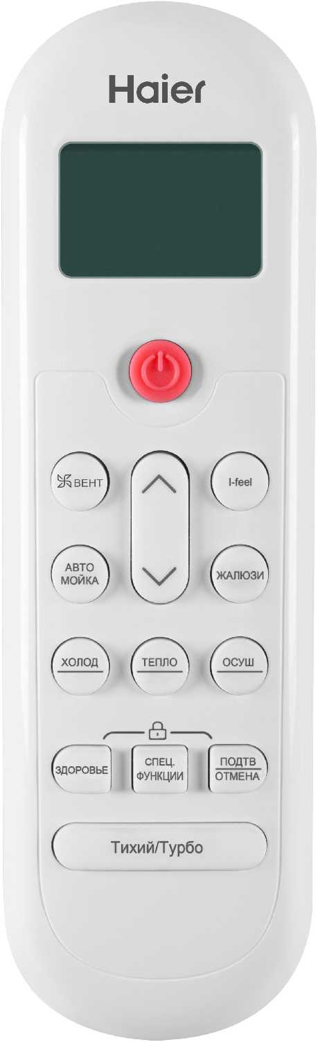 - Пульт ДУ с русифицированным меню и подсветкой упрощает настройку для пожилых пользователей. Кнопки подписаны интуитивно («Осушение», «Турбо»).