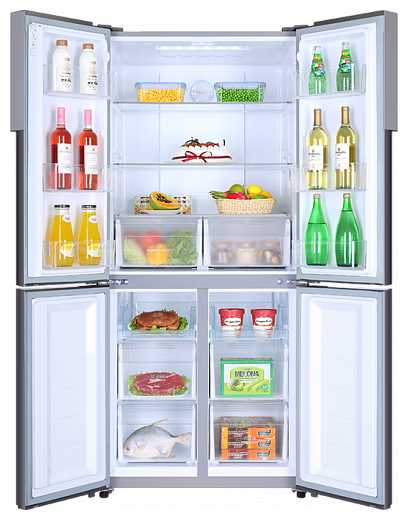 - Четыре отдельные двери позволяют открывать только нужный отсек, не нарушая холод в остальных, что удобно для быстрого доступа к фруктам или овощам.