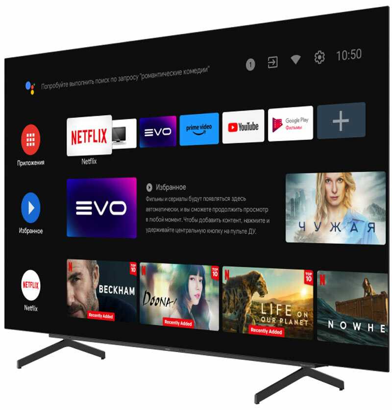 - + Свежий Android TV, черный цвет соответствующий OLED, тонкий экран, яркие сочные цвета, классный пульт с быстрым доступом к приложениям, хороший звук