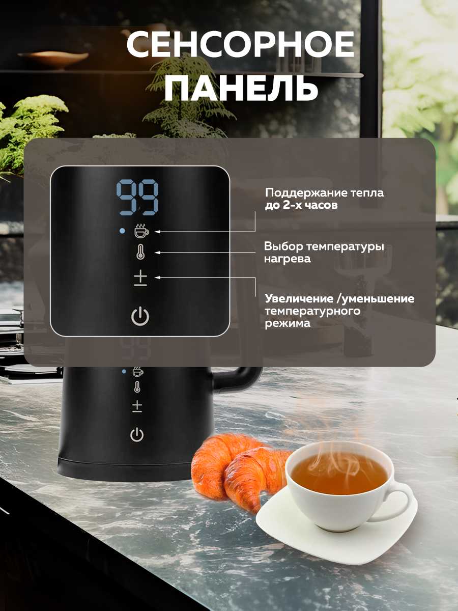 - + Красивый дизайн, долгое время держит тепло и можно с кровати включать чайник 😅🤗