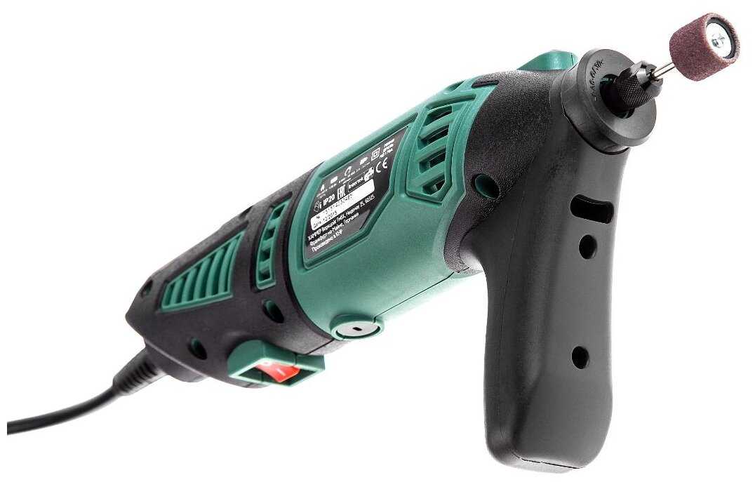 | Особенности конструкции : | блокировка кнопки включения, дополнительная рукоятка, фиксация шпинделя |