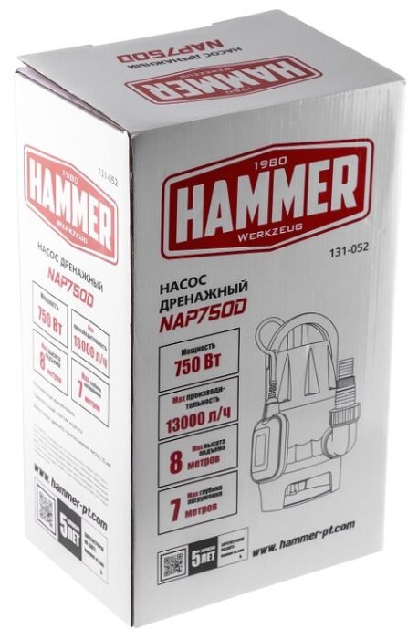 Подробная комплектация : | Насос погружной дренажный Hammer Nap750d грязная вода расход 13000 л/ч |