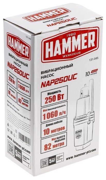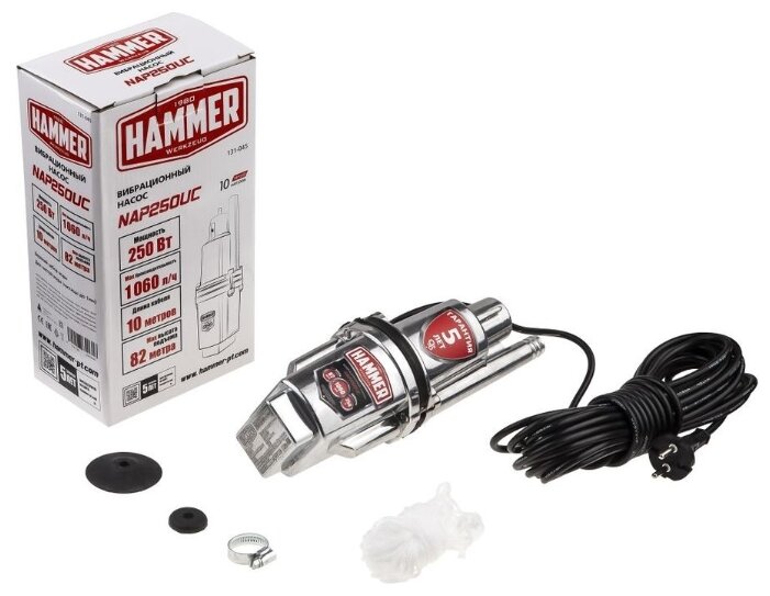 - + Насос для колодца на даче Hammer с верхним забором воды. До этого был этой же марки, проработал много лет, 7 или 8. К тому же цена отличная и гарантия 5 лет. Работает нормально.