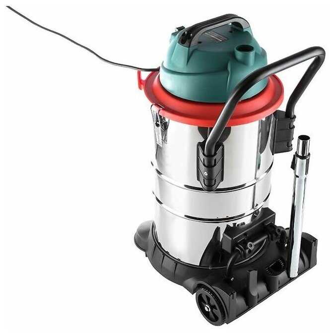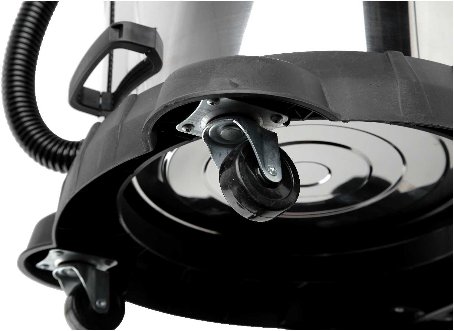 Устройство очень функциональное и продуктивное, дополняется вместительным контейнером на 50 л и шлангом с диаметром 3.2 см. Комфортная эксплуатация обеспечивается благодаря наличию режима влажной уборки. Конструкция дополняется удобными колесами для перемещения по площадке и семиметровым кабелем для подключения к сети. Система дополнена функцией выдува. Оборудование поставляется с круглой, прямоугольной и щелевой насадками, адаптером для электроинструментов.