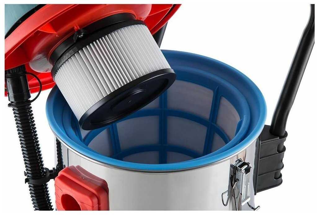 Решили купить этот вариант строительного пылесоса. Выбор оптимальный, так как у него высокая мощность. Хорошо себя проявил на практике. Работает качественно. Без проблем всасывает пыль, опилки, сор и разные другие загрязнения. Также имеется функция «выдув», которая легко справляется с труднодоступными местами. Пылесборник объемом 50 л. Бак изготовлен из высококачественной нержавеющей стали. Металл устойчив к внешнему воздействию и надолго сохраняет эксплуатационные свойства.
