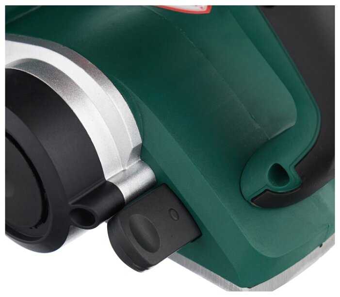 Мощный рубанок. Снимает аж 3мм дерева и при этом ему без разницы липа это или дуб. Выброс опилок удобно регулируется в обе стороны.Модель не тяжелая, но достаточно увесистая для комфортной работы. Покупал его для мастерской и пользуюсь им около полугода.