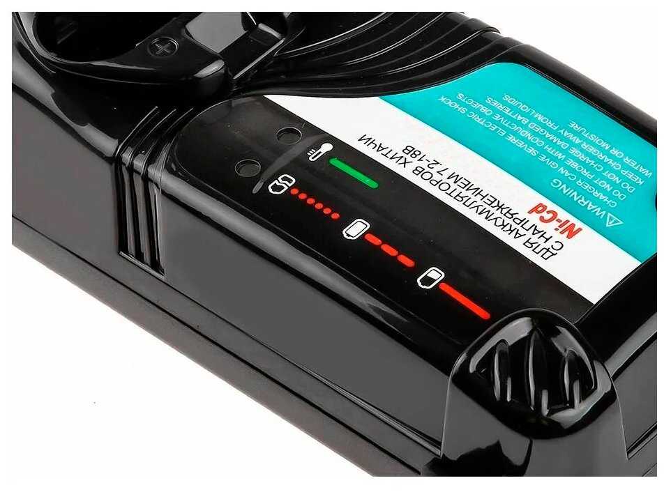- + Плюсом данного зарядника является совместимость с разными аккумуляторами, что очень удобно при наличии большого количества инструмента для дачи