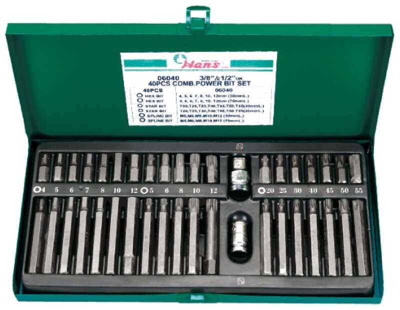 Биты подробно : | 30 мм: H4 H5 H6 H7 H8 H10 H12 мм T20 T25 T30 T40 T45 T50 T55 M5 M6 M8 M10 M12, 75 мм: H4 H5 H6 H7 H8 H10 H12 мм T20 T25 T30 T40 T45 T50 T55 M5 M6 M8 M10 M12 |