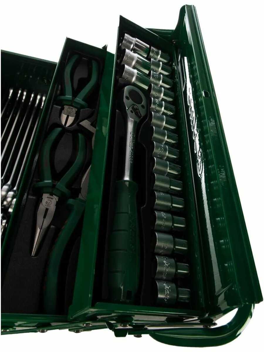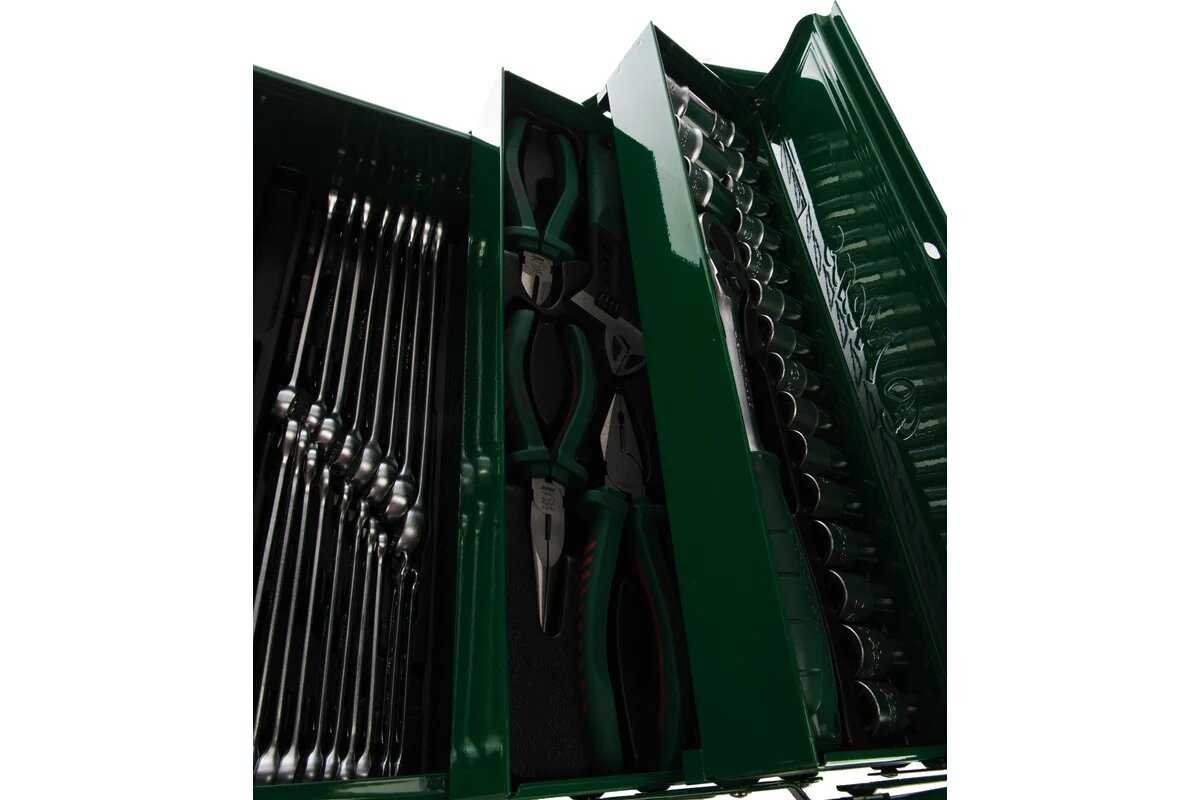 | Инструменты в комплекте : | бокорезы, вороток для головок, ключ разводной, ключи гаечные, молоток, отвёртки, пассатижи, плоскогубцы, трещотка |