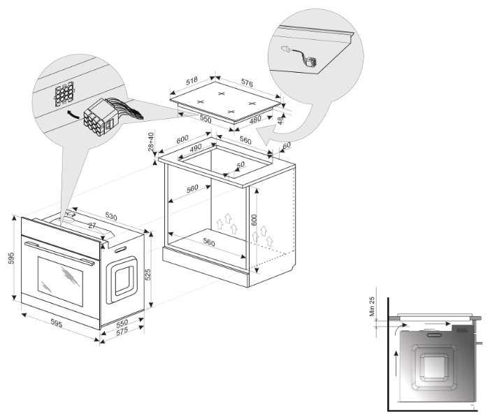 - Тройное остекление дверцы с минимальным нагревом внешней поверхности: