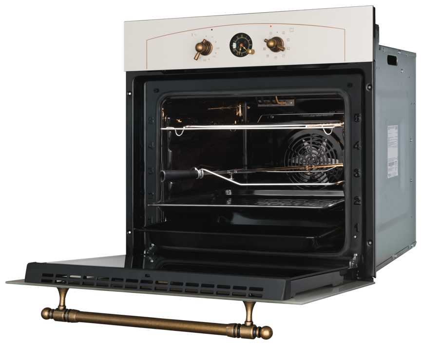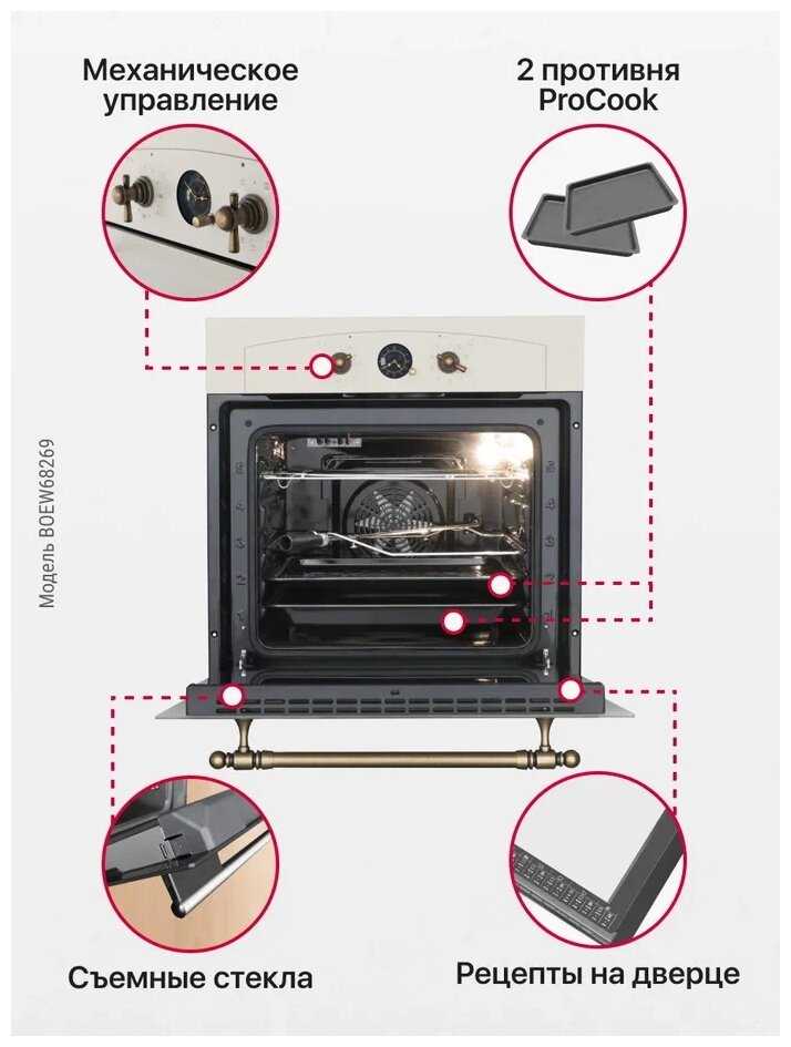 - + Есть все необходимые функции, ретро дизайн, пропекает все идеально , ( в комплекте 2 противеня , решетка и спица для курицы гриль)