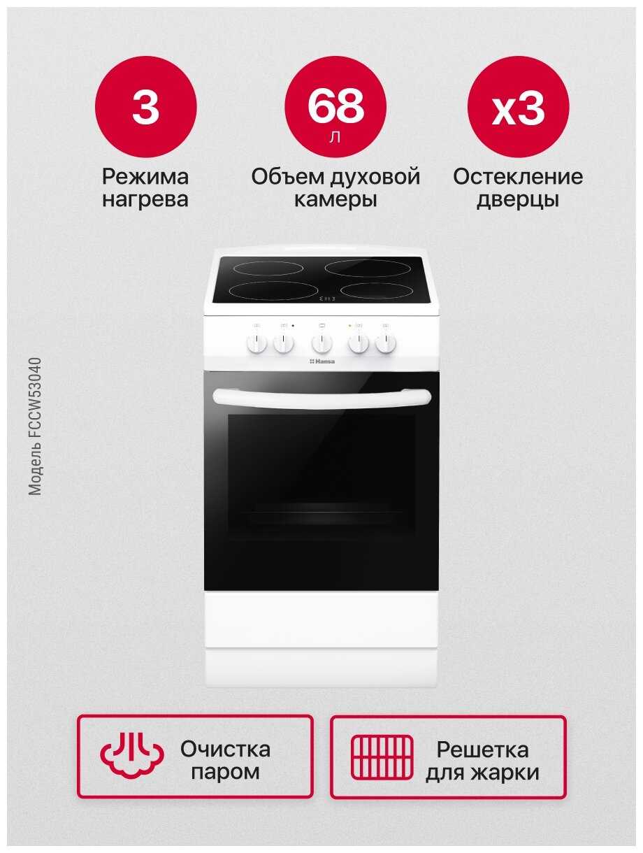 К явным плюсам относятся: быстрый нагрев, комплектация скребком и противнями, понятное управление, стильный дизайн. Духовка с конвекцией справляется с запеканием крупных блюд, а индикатор остаточного тепла предотвращает ожоги. Главные минусы — низкая износостойкость (трещины, сколы), необходимость замены посуды, запах при первом использовании и отсутствие вилки в комплекте. Плита требует бережного обращения: запрещено использовать абразивы для очистки, а пролитая жидкость может затечь в зазоры дверцы. При покупке стоит учитывать, что гарантийный ремонт часто связан с длительным ожиданием экспертизы. Для цены до 30 тысяч рублей модель конкурентоспособна, но долгосрочная надежность вызывает сомнения.