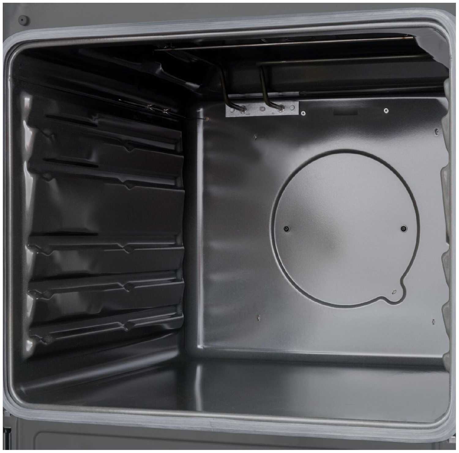 - Оптимальное внутреннее пространство духовки (объем 50 л) размещает до двух уровней блюд без потери качества пропекания.