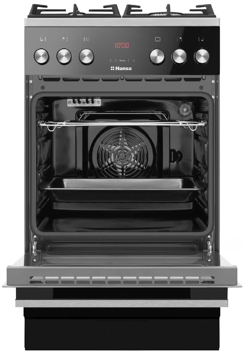 - Электрическая духовка сохраняет работоспособность при перебоях с газоснабжением, обеспечивая непрерывность готовки.