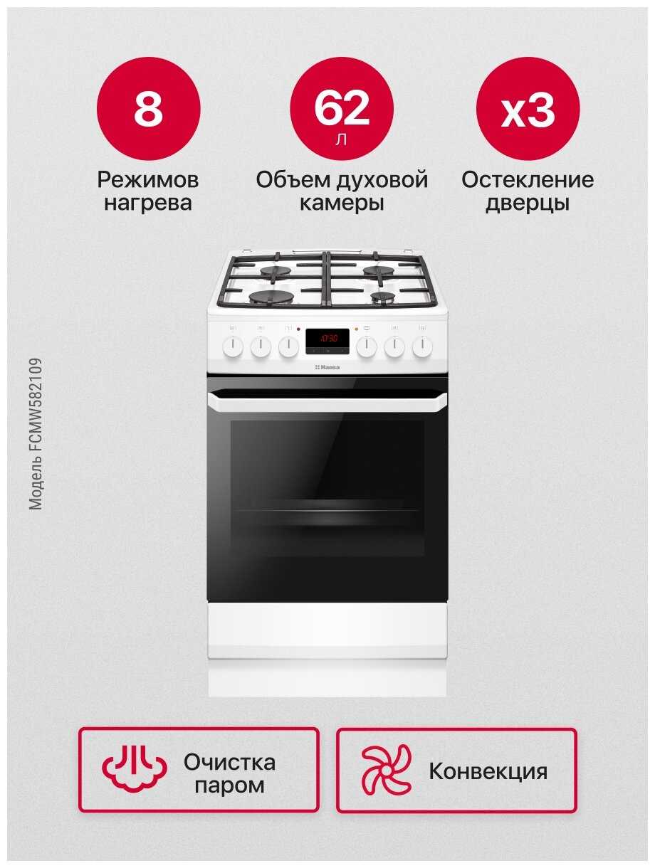 съемное стекло дверцы, наличие шнура, очистка паром Aqualytic, быстрый предварительный нагрев 150° за 4 мин, размораживание, мощность духового шкафа: 7.5 кВт потребление: 0.99 кВт/ч, гриль: 2000 Вт верхний нагреватель: 900 Вт нижний нагреватель, 1100 Вт, 5 уровней установки противня, 2 противня в комплекте: глубокий и плоский решетка, наличие крышки