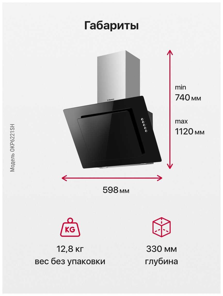- + Отличная вытяжка, долго подбирал к черной столешнице.