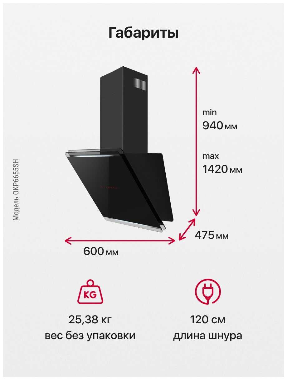 Шумит прям таки неплохо на 1ой скорости, почти как производственная вытяжка. Нет угольных фильтров в комплекте. Диаметр воздуховода 150 мм. Не всегда можно найти комлекты на 150 мм.