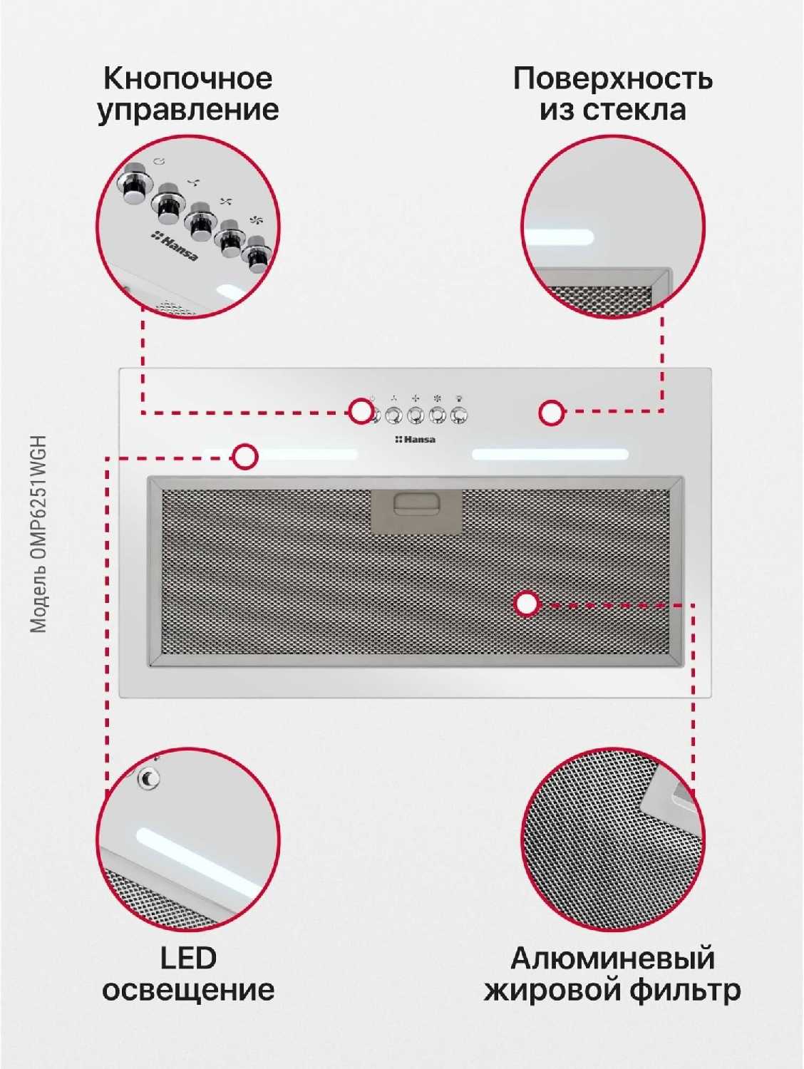 Стеклянная панель, яркий светодиодный светильник, большие и удобные кнопки.