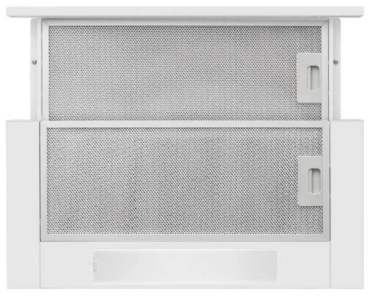 При выдвижении передней панели увеличивается зона всасывания, что повышает эффективность улавливания пара. Механизм работает плавно и надёжно, а в закрытом состоянии вытяжка выглядит лаконично. Эта особенность выделяется как ключевое преимущество для компактных кухонь. -