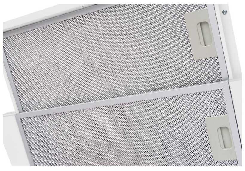 В комплекте идёт только алюминиевый жировой фильтр, который требует регулярной очистки. Важно: мытьё в посудомоечной машине может привести к появлению тёмных разводов. Угольные фильтры для рециркуляции приобретаются отдельно, но их сложно найти, а универсальные аналоги не всегда идеально подходят. -