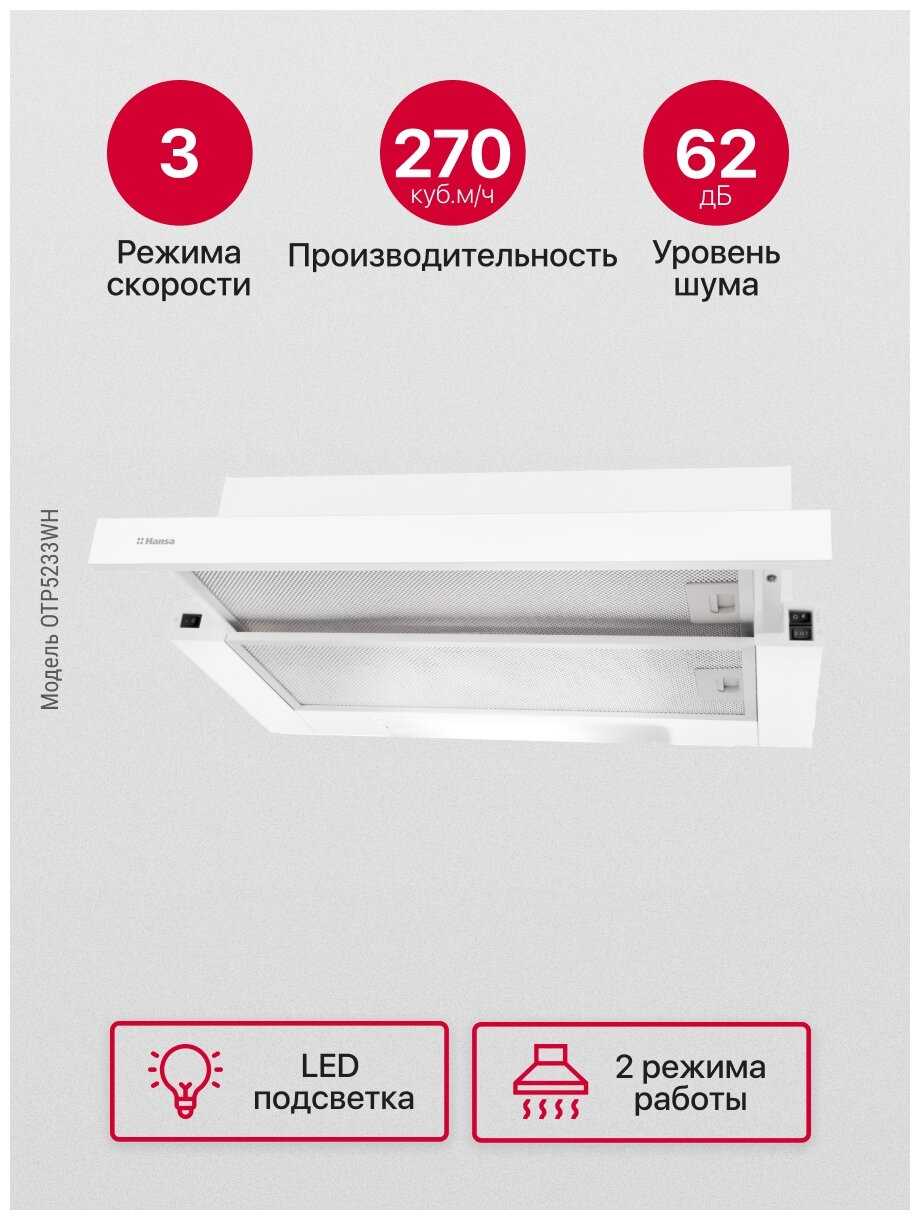 Идеальна для малогабаритных кухонь благодаря компактности и достаточной мощности. Подойдёт тем, кто ценит минималистичный дизайн и тихую работу на низких скоростях. Не рекомендуется для частого приготовления блюд с интенсивным дымом без использования максимального режима. -