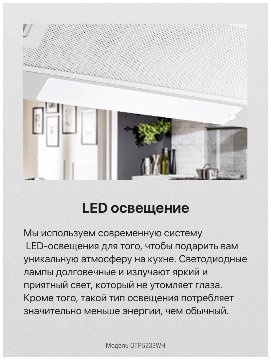 Встроенные диодные лампы дают яркий, чёткий свет, который владельцы активно используют вместо основного кухонного освещения. Подсветка включается независимо от вентилятора, что добавляет удобства. Отмечена её долговечность — даже при постоянной эксплуатации лампы не перегорают годами. -