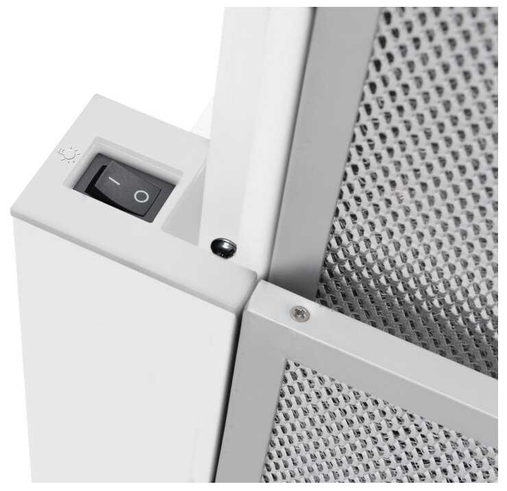Механическое кнопочное управление интуитивно понятно, но имеет существенный недостаток: между кнопками скапливается пыль и жир, которые сложно удалять. Пользователи рекомендуют протирать панель после каждого использования. Кнопки позволяют выбирать между тремя скоростями вентилятора и отдельно включать подсветку. -