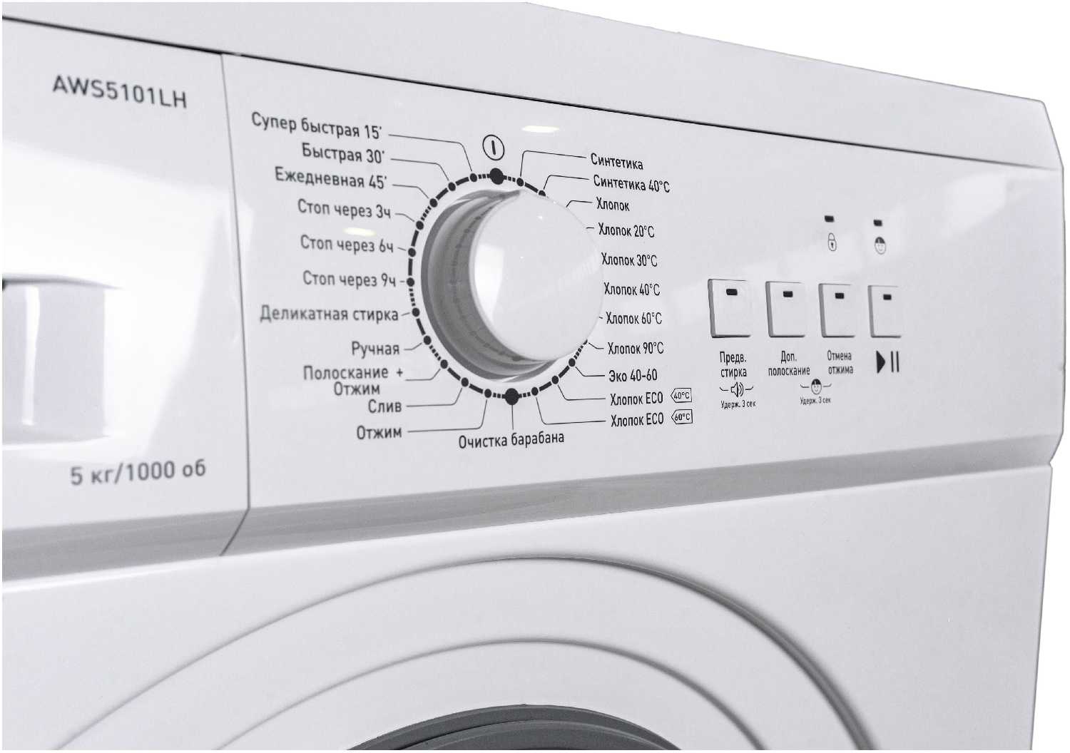 Электронное управление с поворотным селектором программ интуитивно понятно, но отсутствие обратного отсчета времени на дисплее вызывает неудобства — пользователям приходится запоминать длительность циклов. Отдельно отмечается функция отсрочки старта, позволяющая планировать стирку. Блокировка панели от детей работает без нареканий. Недостатком называют отсутствие звукового сигнала по окончании цикла: дисплей просто мигает, что легко пропустить. Настройки температуры и оборотов жестко привязаны к программам — их нельзя менять вручную, что ограничивает гибкость. Например, в режиме «Быстрая стирка 60» нельзя снизить температуру или увеличить загрузку.