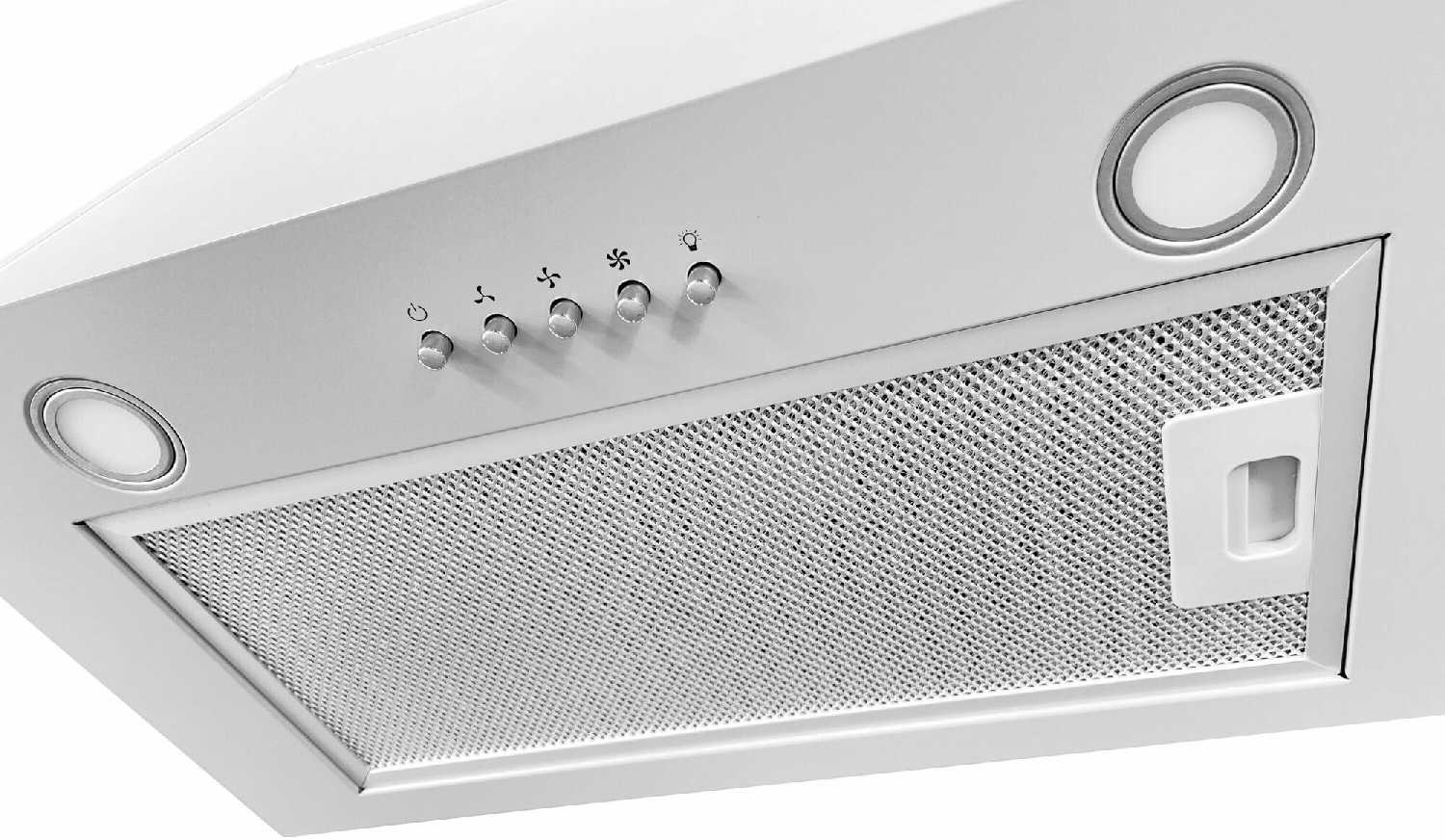 - Полностью встраиваемая конструкция (только у этой модели в линейке) позволяет монтировать вытяжку заподлицо с фасадами, не выступая за габариты шкафа.