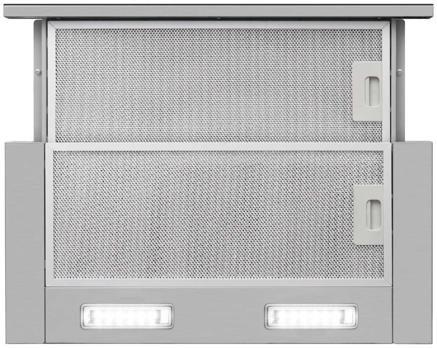 - Выдвижная панель увеличивает площадь всасывания, улучшая захват пара и жира непосредственно над варочной зоной.
