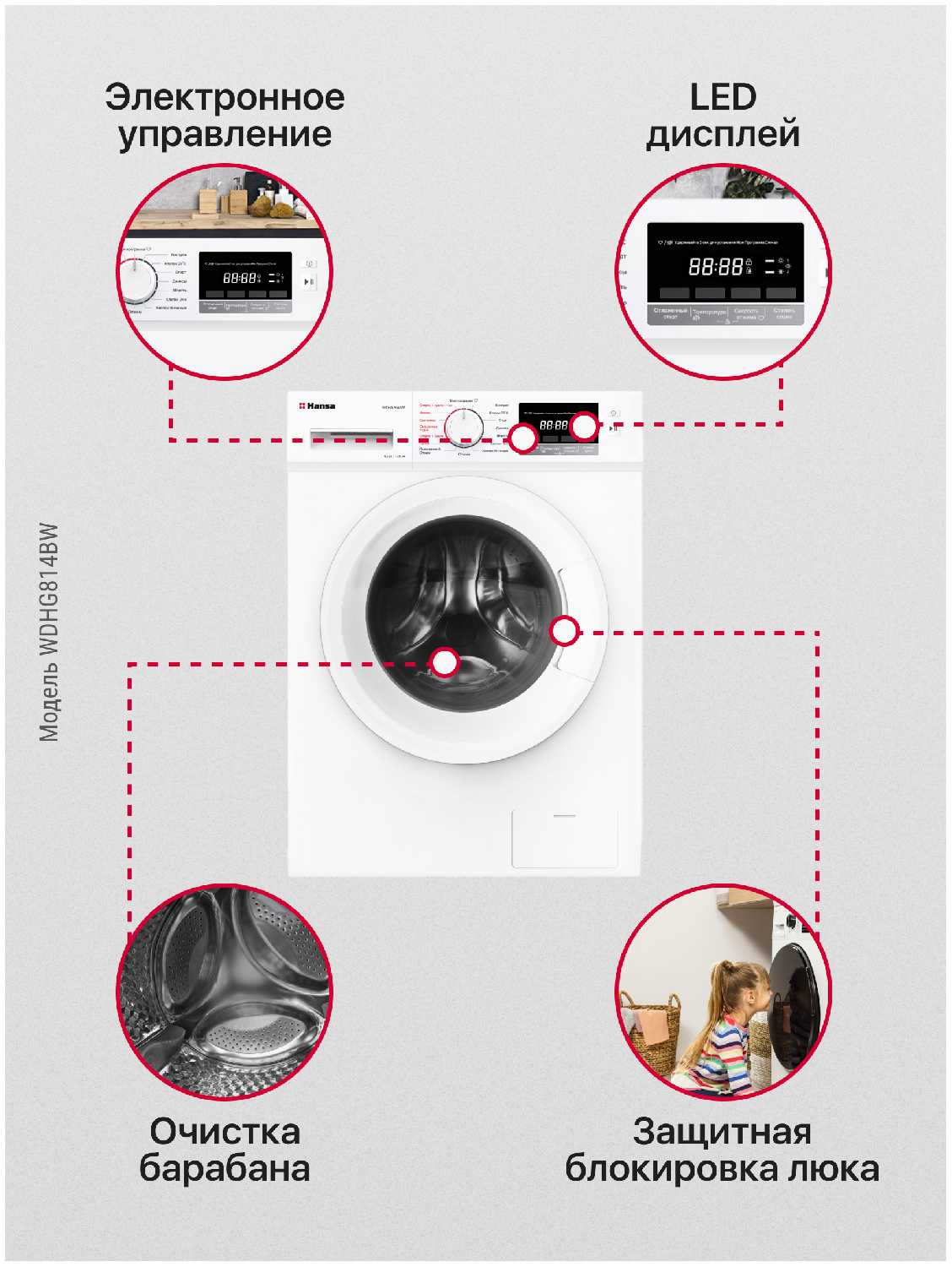 контроль баланса, отложенный старт, контроль за уровнем пены, очистка барабана