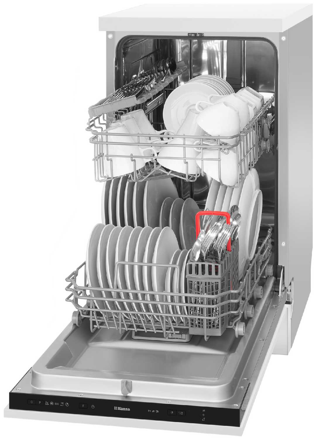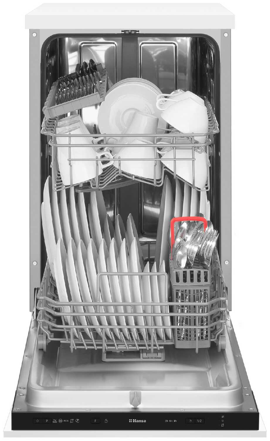 Это наша первая посудомоечная машина и мы ей более чем довольны. Со второго раза я выставил нужный объем соли и посуда стала чистая без белых капель и разводов. В основном включаем экспресс-программу на 30 минут и кладем пол таблетки Filtero 703 (брал здесь же) - все отлично отмывается. Если много посуды (после праздника или большой готовки, то с полной таблеткой на долгую программу)