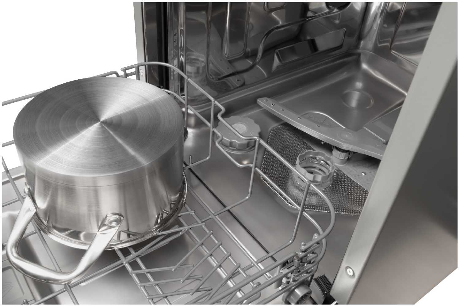 Сразу после мойки посуда горячая и сухая.