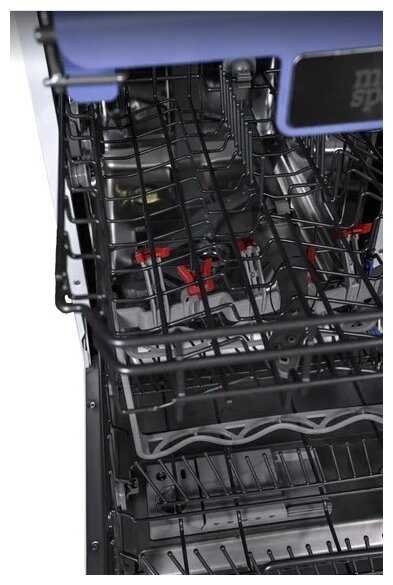 Отмывает боле менее хорошо, иногда не домывает ложки и прилипшую кречку, но мы моем на часовом режиме, если включать гигиенический то отмывает хорошо, через год проржавела вся верхняя корзина, при чём на нижней ни намёка на ржавчину