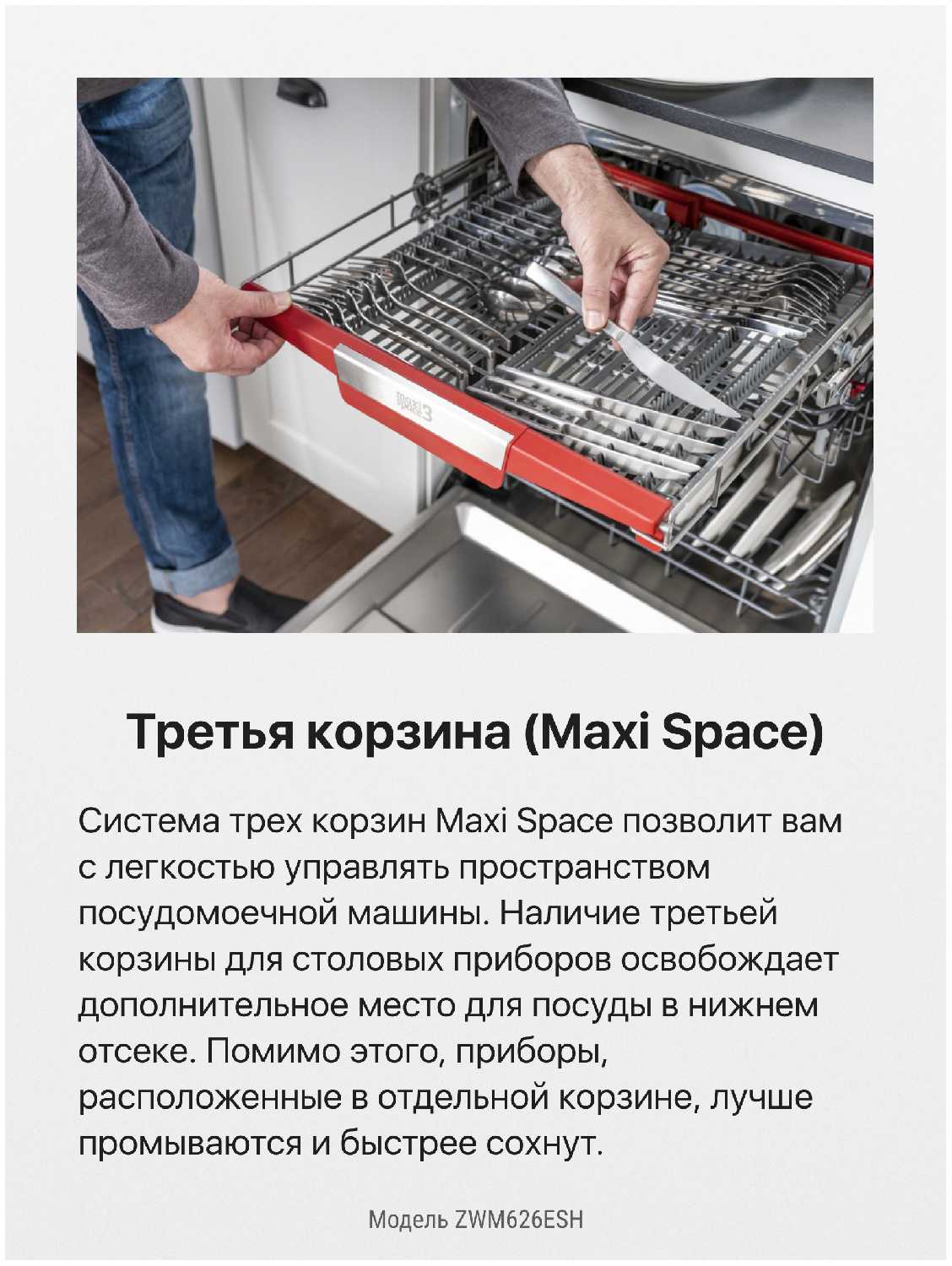 - + много программ мойки, есть половинная загрузка, отключаемые сопла, полная защита от протечек, третья полка вместо корзины