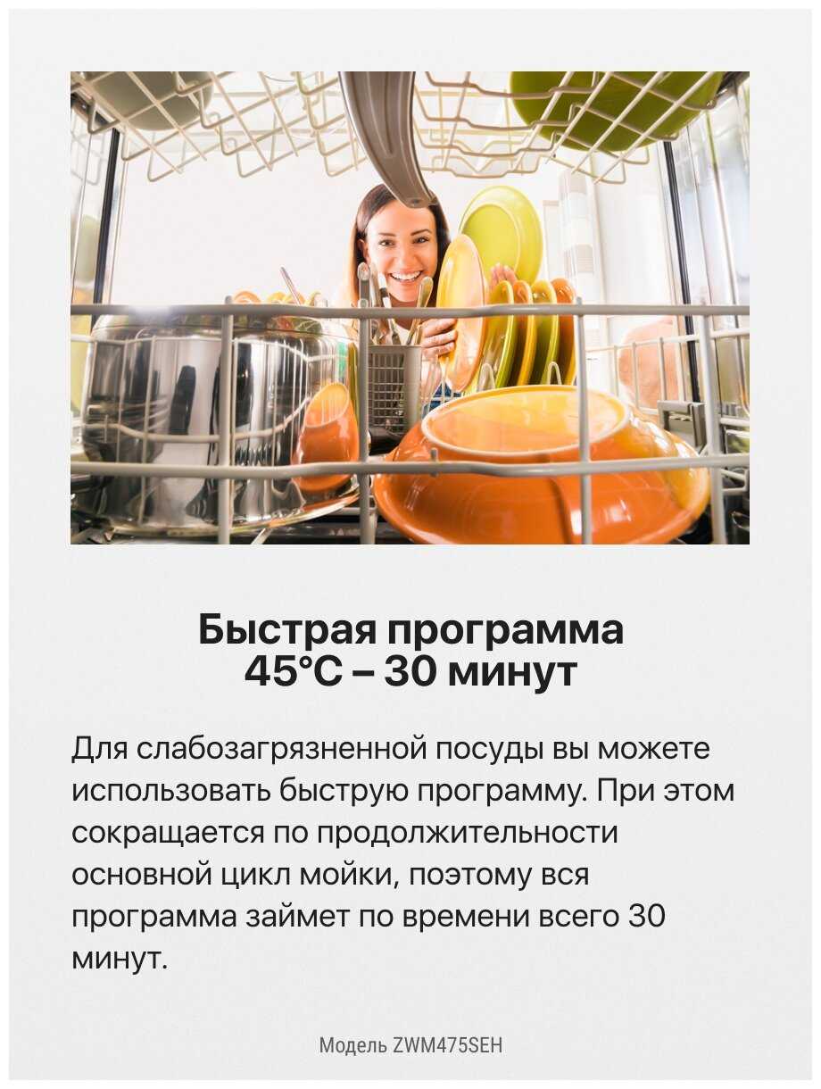 Программы : | быстрая, интенсивная, режим половинной загрузки, стандартная, экономичная |