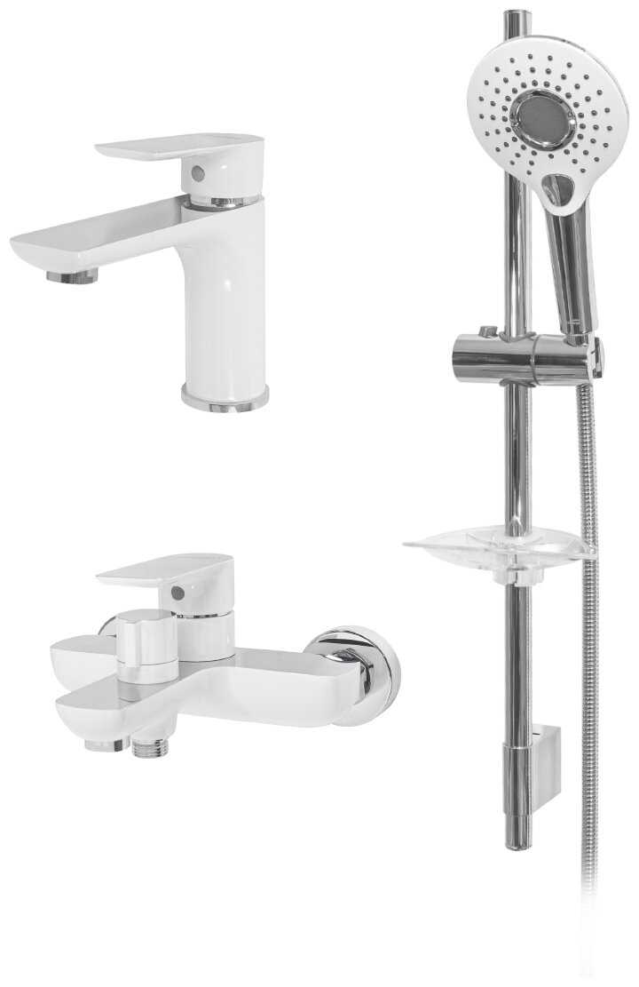 | @Комплектация : | стойка - 1 шт., смеситель для ванны - 1 шт., смеситель для раковины - 1 шт., лейка душевая - 1 шт., шланг - 1 шт., держатель для лейки - 1 шт. |