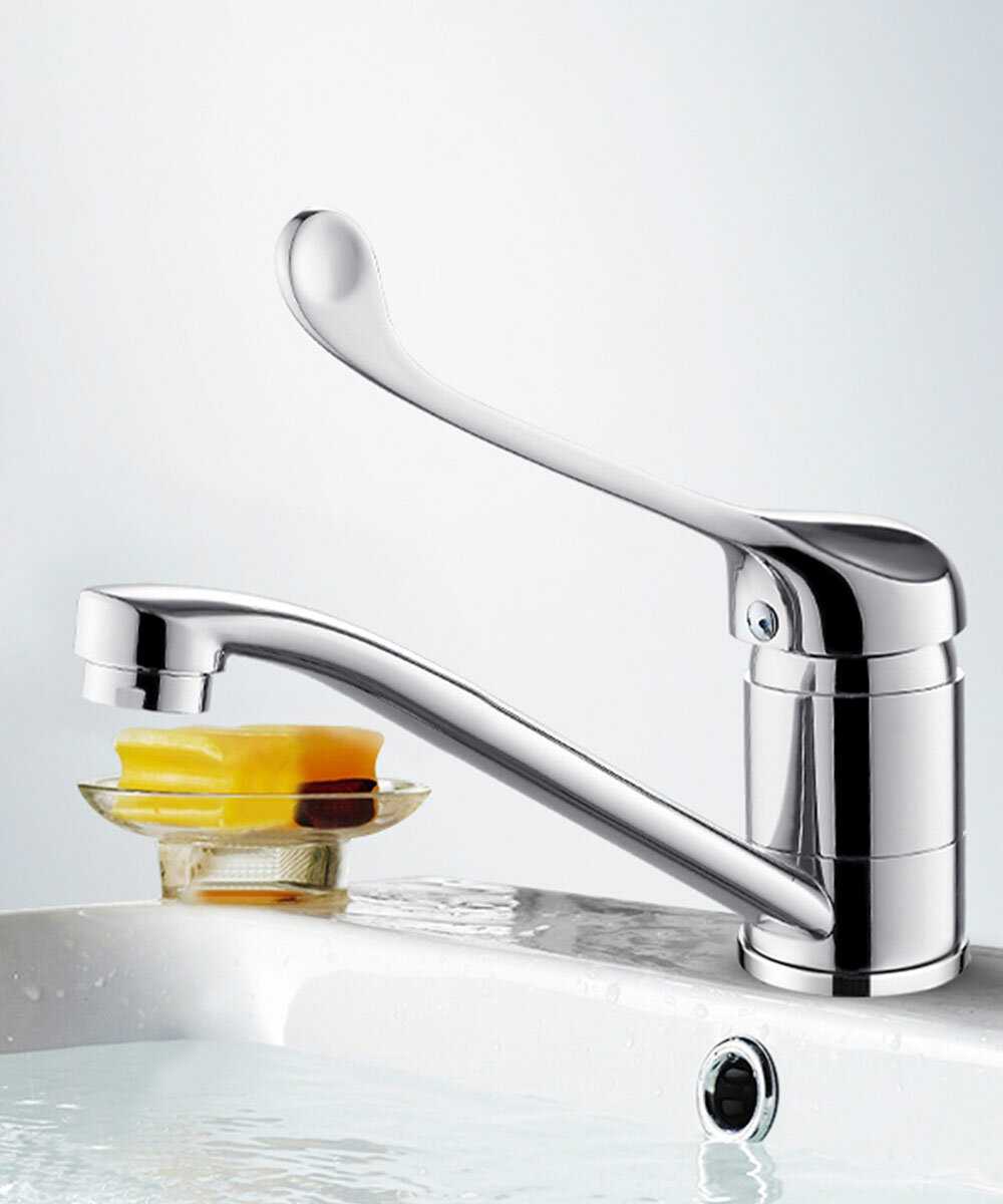 - + отличный кран. у нас раковина высоко. и дети даже на табурете не доставали до обычного. с этим - достают.