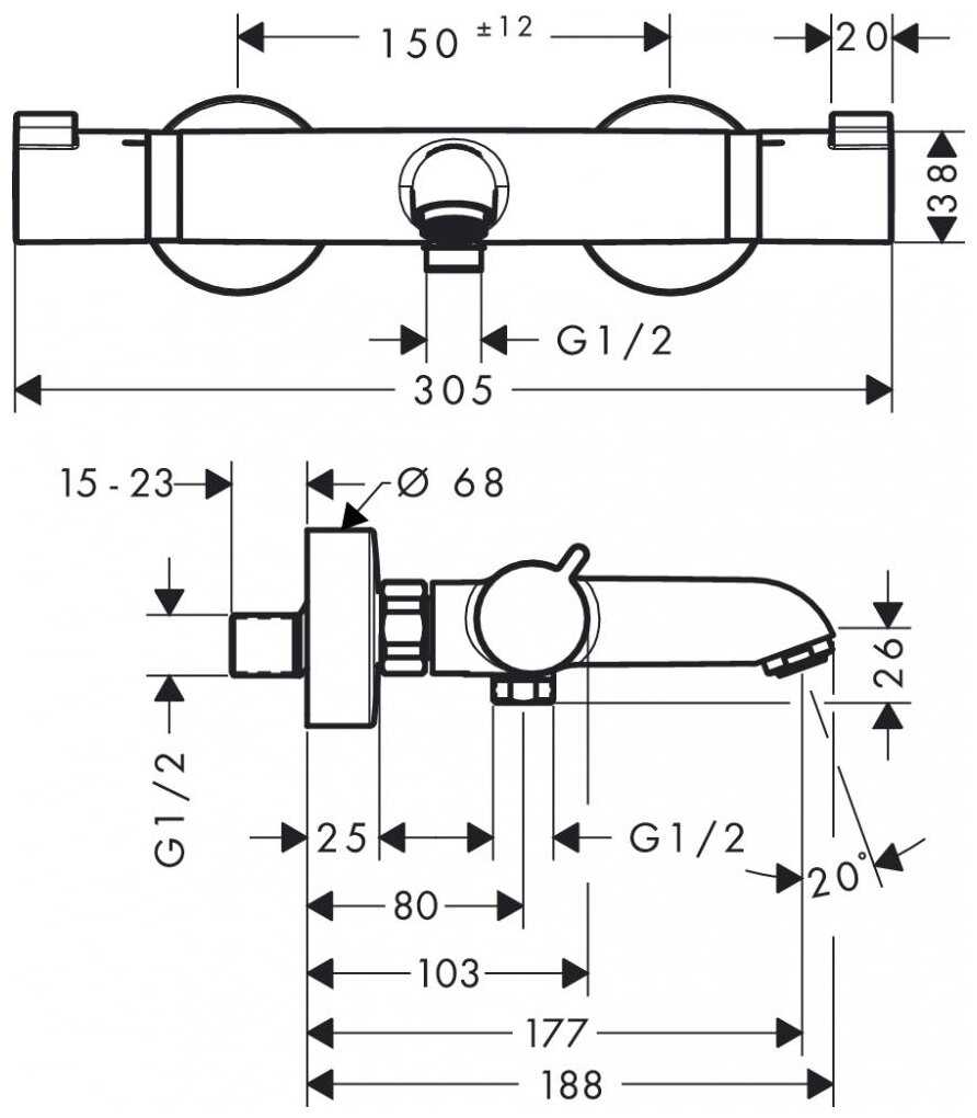 - + Функции термостата на "5", удобные рукоятки, излив в ванну под углом 110 градусов (а не 90, как у большинства).