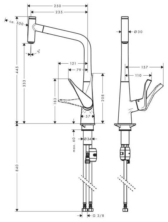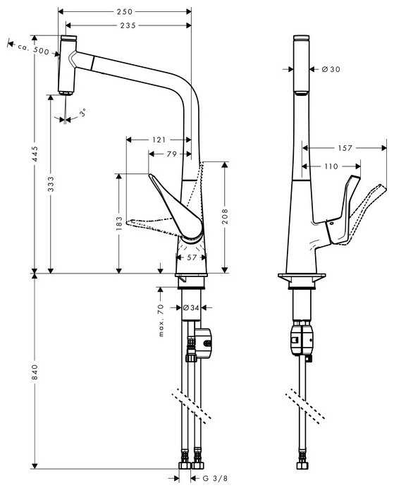 - тип излива: выдвижной