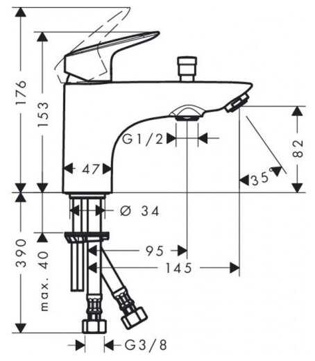 - + Удобная конструкция - лейка душа снизу. Кран небольшой, компактный, не мешает. Работает хорошо.