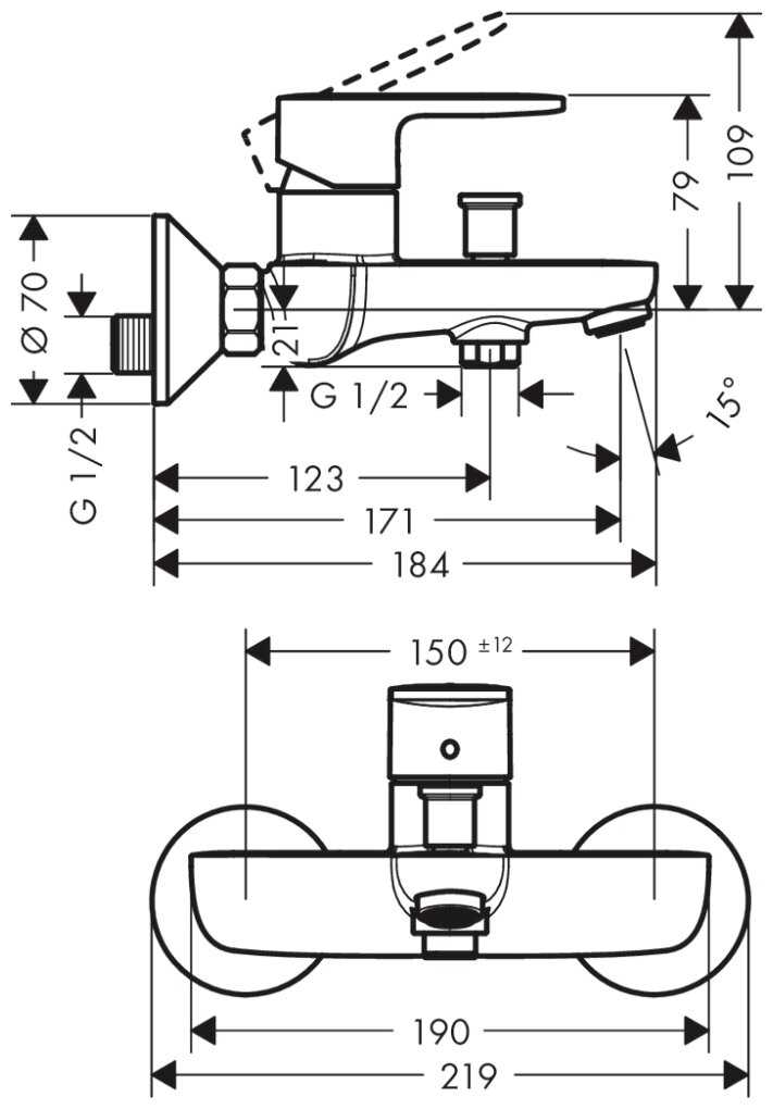 - длина излива: 171 мм.