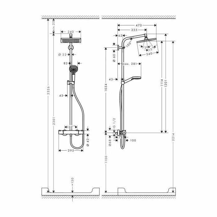 | Дополнительная информация : | высота стойки для душа: 1201 мм, диаметр душевой лейки: 100 мм, длина верхнего душа: 240 мм, ширина верхнего душа: 240 мм, длина держателя верхнего душа: 350 мм, предохранительный ограничитель при 40°C, регулируемое по высоте крепление ручного душа, подъемная труба может быть укорочена по высоте, типы струй верхнего душа: Rain, тип струи ручной душ: Rain IntenseRain, с термостатическим смесителем, страна: Германия |