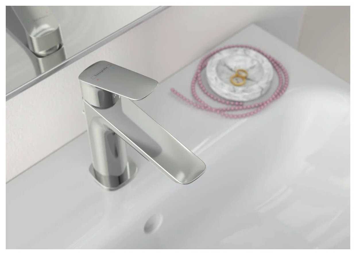 Он выглядит очень небольшим и изящным, но при этом, благодаря углу в 30°, достаточно далеко направляет струю. Для меня это было критично, т. к. достаточно широкая раковина и большое расстояние между монтажным отверстием и краем чаши раковины. До него ставил Grohe Eurosmart, тоже классный смеситель, но у него угол падения струи 22°, и приходилось руки далеко к смесителю протягивать, что достаточно неудобно, т. к. почти задеваешь стенку чаши и лишняя нагрузка на спину.